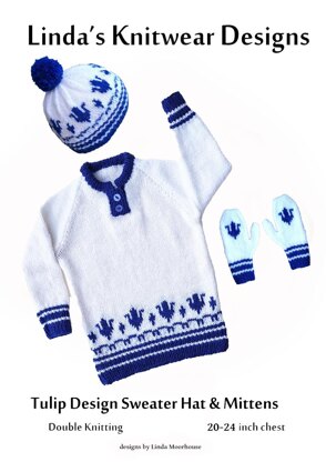 Materials: 200g-200g-300g of Stylecraft Life double knitting in white (main colour) and oddments of blue (contrast) for the trimming; 2 buttons