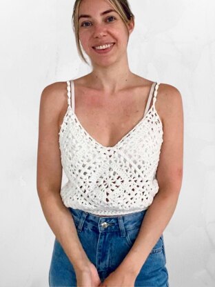 Crochet your own ‘Tulip Square Top’ using this crochet pattern in PDF format.