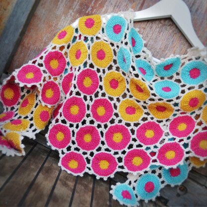 Tunisian Flowers is a bright little kerchief-shaped shawl, which is fun to crochet and to wear.