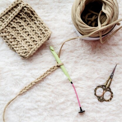 This yarn has been discontinued. Yarn substitutes: Bernat Maker Home Decor, Paintbox Yarns Recycled T-Shirt Yarn, Hooked Zpaghetti Yarn