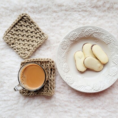Pattern Notes: This pattern is for two textured Tunisian crochet coasters that can be completed by a beginner! It is made with two simple stitch repeats, the set can be completed easily in a couple of hours and is a perfect mindless project.