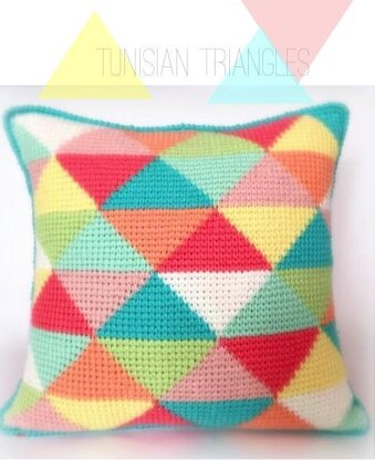 Add a punch of colour to your home with this bright and bold Tunisian crochet cushion. This is not a difficult pattern, using only Tunisian Simple Stitch (TSS) but some patience and concentration may be required for the colour changes at first. Charts are included for two different colour-ways plus pictures of even more to inspire your own creation.