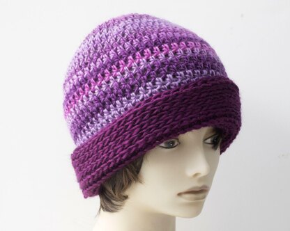 This is an easy crochet pattern. the brim is crocheted to look like knit stitches for an interesting effect.
