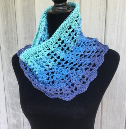 This is a pretty and lightweight easy cowl to make to dress up spring and summer outfits. It’s also a delicate addition to any seasonal outfit.