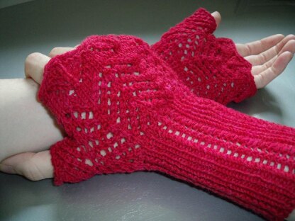 These lacy gloves are good for keeping your hands warm in transitional weather (like the British summer!). The perfect use for that skein of sock yarn that's too nice to be hidden away in shoes.