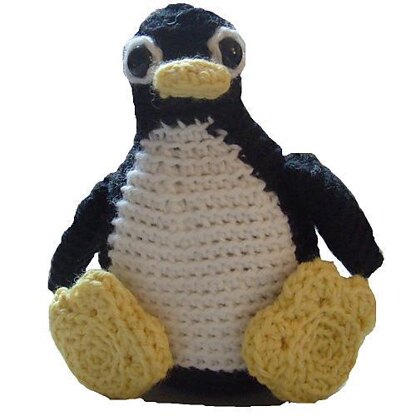 * size H (5 mm) crochet hook * 3 colors of worsted weight yarn (less than a skein of each): black, white and yellow * polyester stuffing * tapestry needle * two 12mm black animal eyes