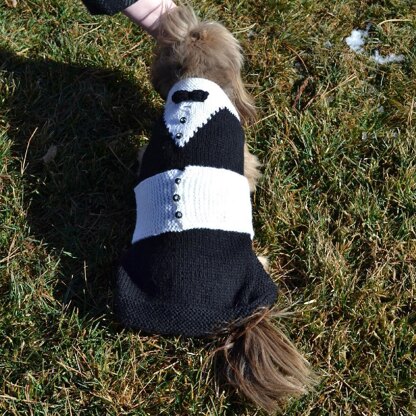 I do recommend that you first knit our Easy-On Dog Sweater to determine the exact pattern that fits your dog. While I like the leash buttonhole design of our other dog sweater patterns, I do not recommend using it on this design as the collar area is crowded.