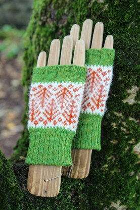 Traditional Shetland fingerless gloves with a tree motif.