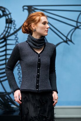 A Tweed jacket inspired by Christopher Kanes’ elegant tweed version. Mine has sleeves in stranded colourwork in stockinette stitch as a contrast to the tweed pattern made with slipped stitches on the body and a fitted waist. The tweed jacket has been given a vintage look, by using the fine, laceweight Hillesvåg Alv Kamgarn held double. Or use a thin fingering yarn on its own (and half the yardage).
