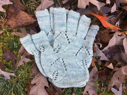 Twin Leaf Gloves are perfect for that slightly nippy Fall or Early Spring day when you just can't quite keep your hands warm without a little help! Dainty and elegant while keeping you cozy with that extra boost of warmth, Twin Leaf Gloves can be worn indoors or out. Knit in the round on double-pointed needles, they are an engaging but quick knit with just enough lacework to keep you focused. And since they require less than one skein of yarn per pair, they are perfect for stash-busting! Designed to fit closely with 0.5" to 1" negative ease, Twin Leaf Gloves are sized for women's hands in small, medium, and large. To determine the appropriate size, measure around the knuckles of the dominant hand and choose a size with a hand circumference 0.5" to 1" smaller than your measurement. Pattern instructions are both written and charted.