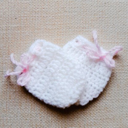 Soft and delicate, these white crochet mittens are perfect for keeping tiny hands cozy and warm.