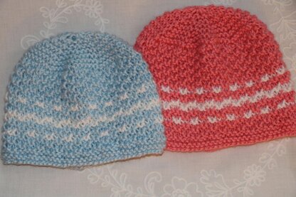 Twins hats.Witten in English US standard terms. It is simple and easy to make. It has step-by-step instructions. Hats are hand-knitted with acrylic yarn medium weight in pretty textured stitch, which add some interest and also softness to fabric. Decorated with little squares of contrast color. recommended for early spring, fall and mild winter. Materials. Straight or circular knitting needles US 7 - 4.5 mm and US 6 - 4.00 mm.; yarn needle; any yarn weight 4;