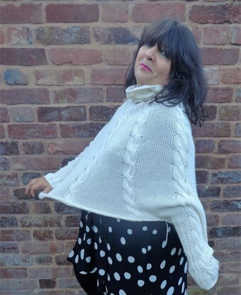 Just pull this abbreviated poncho over your head to experience instant soft warmth, cabled and studded with moss-stitch in our most luxurious baby alpaca yarns.