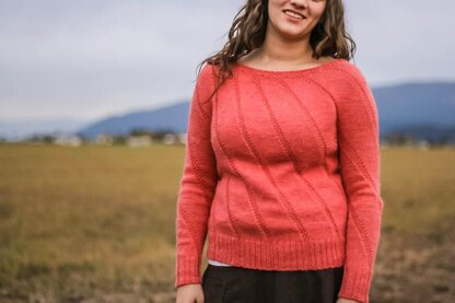 A spiralling stitch pattern twists about this sweater. All the shaping; sleeve, waist, and yoke, is done in the pattern. Despite looking complex, the stitch is very simple and it is easy to adjust the length of the sweater and add in more or less waist shaping. You might be surprised when you read the pattern!