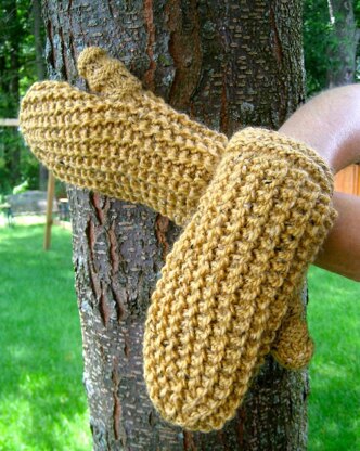 These mittens are completely reversible. Each side showcases a differently textured stitch. The mittens are worked in the round using a simple 2 round repeat stitch pattern, which is easy to work and to memorize. The thumb is knit on a smaller needle which will help to eliminate cold thumbs when wearing the mittens. Matching Cloche and Cowl patterns are available.