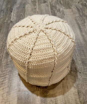 A mix of basic stitches and cable stitches add some texture and design to this gorgeous pouf. A fun repeating pattern makes this a joy to crochet.