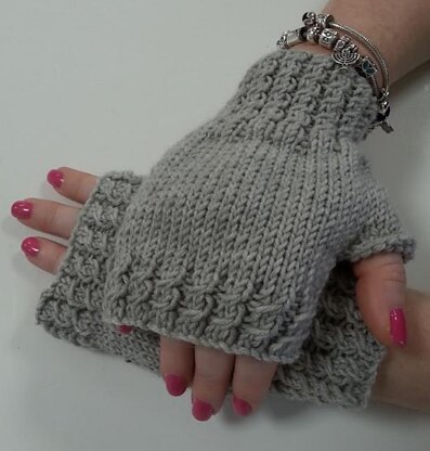 I love the rib on these fingerless gloves; it is called “left twist stitch”.