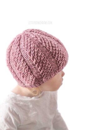 The Twisted Rib Hat Knitting Pattern is officially my favorite non-animal hat knitting pattern. And this gorgeous stitch is also really easy to do. This pattern looks great all the way from the brim to the very top with a pretty twisting pattern. This cute little baby hat is knit in the round.