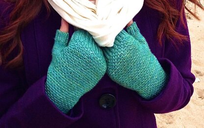 The Twisted Sand Mitts are a fingerless mitt pattern designed to keep your hands cozy while answering an email or text during your morning commute. They can also be folded down for more dexterity when you need to find something in the bottom of your purse. The stitch pattern may look complicated but is actually quite simple to knit.