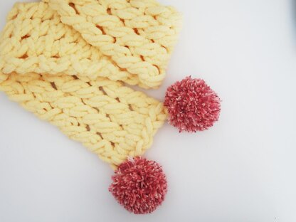 It's a very easy scarf pattern made with Off The Hook Yarn from Lion Brand. No tools needed! Beginner friendly and such a quick project to make!