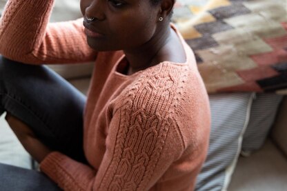 Twisted Vines is a long-sleeved, slightly boxy V-neck pullover with a twisted stitch cable pattern that runs along the saddle shoulders and down the sleeves. The cable pattern was inspired by foliage in all its beautiful shapes and forms - vines, leaves, trees, flowers - and stages of being alive and in decay. It’s a super wearable sweater that’ll go with everything!