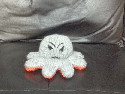 Soft toy knitted. One side is a happy face and the other side is a sad face. When turned inside out.