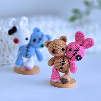 ⭐ Following this pattern, a Two headed Halloween doll Finished size (excluding ears): #2 fine: 4cm x 9cm(11cm-bunny) #3 light worsted:5cm x 12cm(15cm-bunny) The size and shape of handmade dolls may vary depending on the individual.