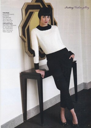 This is a pattern for a Two Tone Jumper, originally published in Knitting. I don t have the issue date, but it will be in a few issues after June 2013. It is in stocking stitch with rib borders, an intarsia motif on the sleeves and small bobbles on the motif and ribs. Photo Laurel Guilfoyle for Knitting Magazine.
