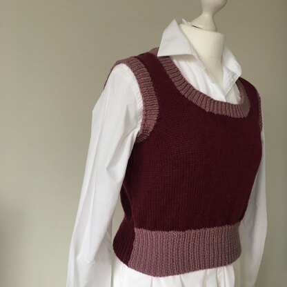 Continuing with my love of tank tops and easy to follow patterns this two tone tank top has a deep rib which sits on the waist. It can also be knitted in one colour but I like the two tone for added detail. Knitted in Pure Wool it is an enjoyable and easy knit, easy to wear making it a perfect spring/autumn transitional layer.