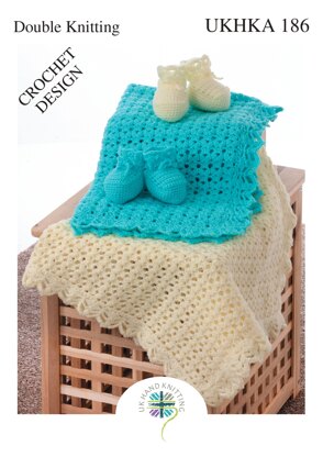 UKHKA 186 Crochet Blanket and Bootees - UKHKA186pdf - Downloadable PDF