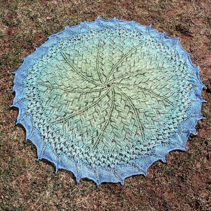 Under the Sea Shawl is a delightfully lightweight and deceptively straightforward lace pattern. Knit entirely in the round (and without a single purl stitch!) it creates a shawl that is easy to wear and a pleasure to knit. Using a gradient yarn brings a whole other level of impact to Under the Sea, but it would be equally gorgeous in a semisolid yarn as well.