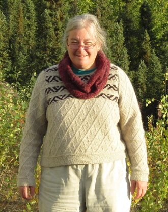 The lower body and sleeves are worked on the slant, following some ideas in cowls I've made - directions are also provided for the cowls.