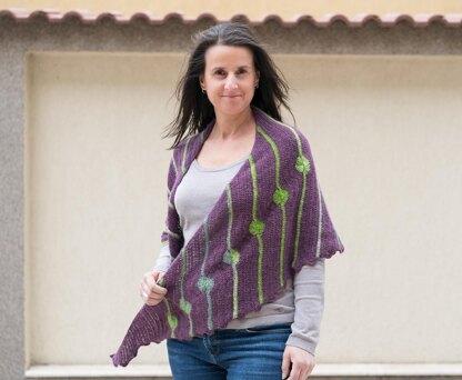 Shape is achieved by increasing at one side and decreasing at the other side, incorporating the color pattern in the same time as the shawl grows. Simple borders are applied on the edges to give a finished look. Pattern uses basic stitches only, but attention and good recognition of the stitches is needed as the stitch count is important for the proper alignment of the “dots”.
