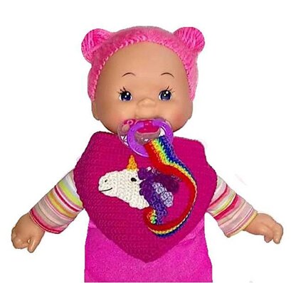 this bib is an all-rounder…. 1) it warms the neck 2) when the baby is theeting, it catches the spit 3) the pacifier can´t be lost The size around the neck can be adjusted.
