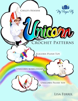 * Hooded sweater with hooves that slip over the hands to keep them warm. Pattern includes children sizes 4, 6 and 8. Sweater zips up the front. * Plushie is the essential toy for any unicorn lover. * Elicorn plushie is the sweet animal that results when you cross an elephant with a unicorn. * Finish off your child's unicorn bedroom decor with this adorable bobblehead. * Waist bag (fanny pack) for your child to wear on this summer's adventures.