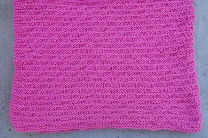 Easy stitch up on the roof baby blanket. Uses worsted weight yarn and # 10 knitting needles.