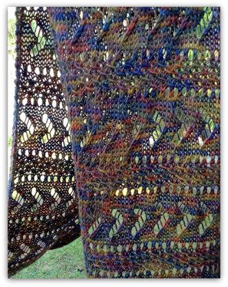 This scarf is knit with alternating horizontal lace and tweed stitch panels. If you have a moderate amount of experience with lace knitting you'll likely find this an enjoyable knit.