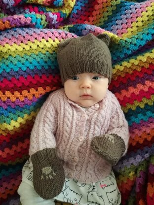 This ‘little bear’ set is guaranteed to melt your heart! The pattern combines the designer’s love of woodland knits and novelty baby hats, and the mitts add a cute finishing touch.