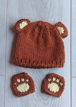 This baby bear hat and mitts pattern was designed for a new baby coming into the family. The entire project can be done in a single afternoon if you’re fast, and makes a simple quick gift for a baby shower. While the construction is simple, duplicate stitch is used on the mitts to create paws and short rows are used on the ears to create a plush structure. Use acrylic yarn for washability and to reduce the possibility of allergic reactions to natural fibers.