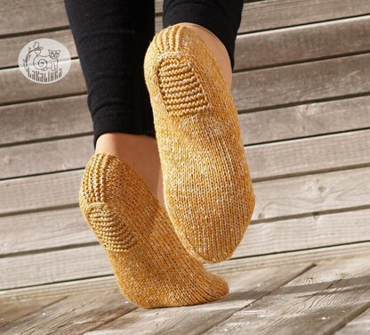 The universally slippers are perfect as not slippery house slippers for all seasons. Knit up in a soft cotton yarn, these are sure to be your favorite slippers. Worked in Aran or Worsted weight yarn they are a great project for a single skein. The slippers also make a lovely gift.