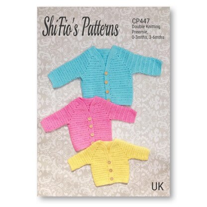 Crochet Pattern for a raglan v-neck baby cardigan. Wonderfully snuggly for throwing on over a dress or a baby grow The pattern is clearly and simply explained and the 3 sizes ( preemie, 0 to 3 months and 3 to 6 months) are included You will need double knitting yarn and crochet hooks 4mm & 3.5mm