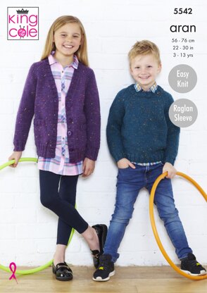 V & Round Neck Cardigans & Sweaters in King Cole Aran - 5542 - Downloadable PDF