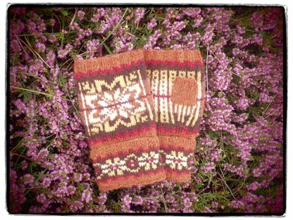 Learn to knit the Shetland way! This fair isle motif is a particular favourite of mine as it features in my one remaining pair of gloves made by my grandmother Jemima (picture of her taken in the 1970's on the left). Construction of these mitts are made in the same style so the techniques used go back for generations of Shetland knitters. These techniques include a thumb gusset and a folded, patterned cuff so may prove to be a little challenging to a new knitter. The folded cuff maintains pattern and design on the outside but also the benefits of snug ribbing on the inside giving a comfortable and double layer of warmth around the wrist.