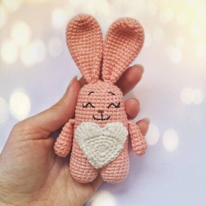 This PDF pattern includes 10 pages with step by step instructions and photos so you can crochet your own bunny. There are also links on short video-lessons (if you will need some help). Finished toy is about 5" (12,8 cm.) tall when you use yarn 50g=160m and a 2.50 mm. crochet hook. For this pattern you need to have basic crochet and amigurumi skills and to know how to read crochet patterns. You need to know the following crochet terms: • ch – chain • mr – magic ring • sc – single crochet (UK=double crochet) • hdc – half double crochet • dc – double crochet • tc – triple crochet • ss – slip stitch • inc – increase • dec – decrease Supplies: • Yarn (50g=160m or other) • 2.50 mm. crochet hook • Black and brown thread (for the muzzle) • Yarn needle • Stitch markers • Scissors, pins • Stuffing material of your choice This pattern is for personal use only. PLEASE DO NOT COPY, SHARE, TRANSLATE OR DISTRIBUTE PATTERN. You can sell the toys you make!