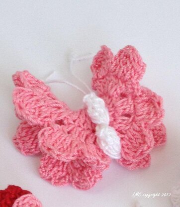 A cute little Valentine's Butterfly to use in many different ways this Valentine's Day. This pattern is fast and easy and can be used as a brooch or in a bouquet. Place them on pillows, stuff animals, doilies and towels. Put them on stick picks and add them to your flowers for a little extra sweetness. Add a magnet and give it to your favorite teacher. She will love it!!!