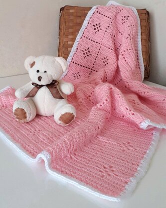 The baby blanket measures 32 inches by 23.75 inches (81.5 cm x 60 cm).