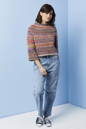 Worked in the round from the bottom up, this cropped boxy raglan is great for layering over tunics, dresses and long-sleeved tops. The 1x1 stranded colourwork creates a firm fabric, and the folded hems add a crisp finish.
