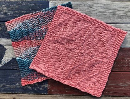 Great for the Novice Knitter who is ready to expand their skills as well as very nice small, take along projects, or while watching TV. There are two designs. The designs are very simple, created by using only knit and purl stitches. Both are knitted flat. These instructions produce a tighter, more durable fabric. Both cloths have written instructions. Valley Mills also has a chart chart.
