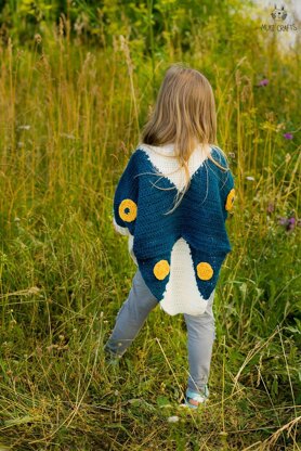 This enchanting poncho crochet pattern allows you to create a stunning garment that will be a standout piece in any girl's wardrobe. The Vanessa butterfly poncho features a hidden pocket at the front and colorful wings at the back, making it a truly unique and beautiful accessory.