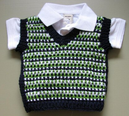 When I saw this Speckle Rib stitch pattern, I just had to put these classic colors together in a vest for a baby boy. With a polo shirt it looks like a classic golfer’s outfit so it is named the Vardon Vest after the famous British golfer, Harry Vardon. The pattern is worked from the bottom up in two pieces using a 3-needle bind-off at the shoulders. The color combinations are endless and could even be adapted for a girly version of the vest.